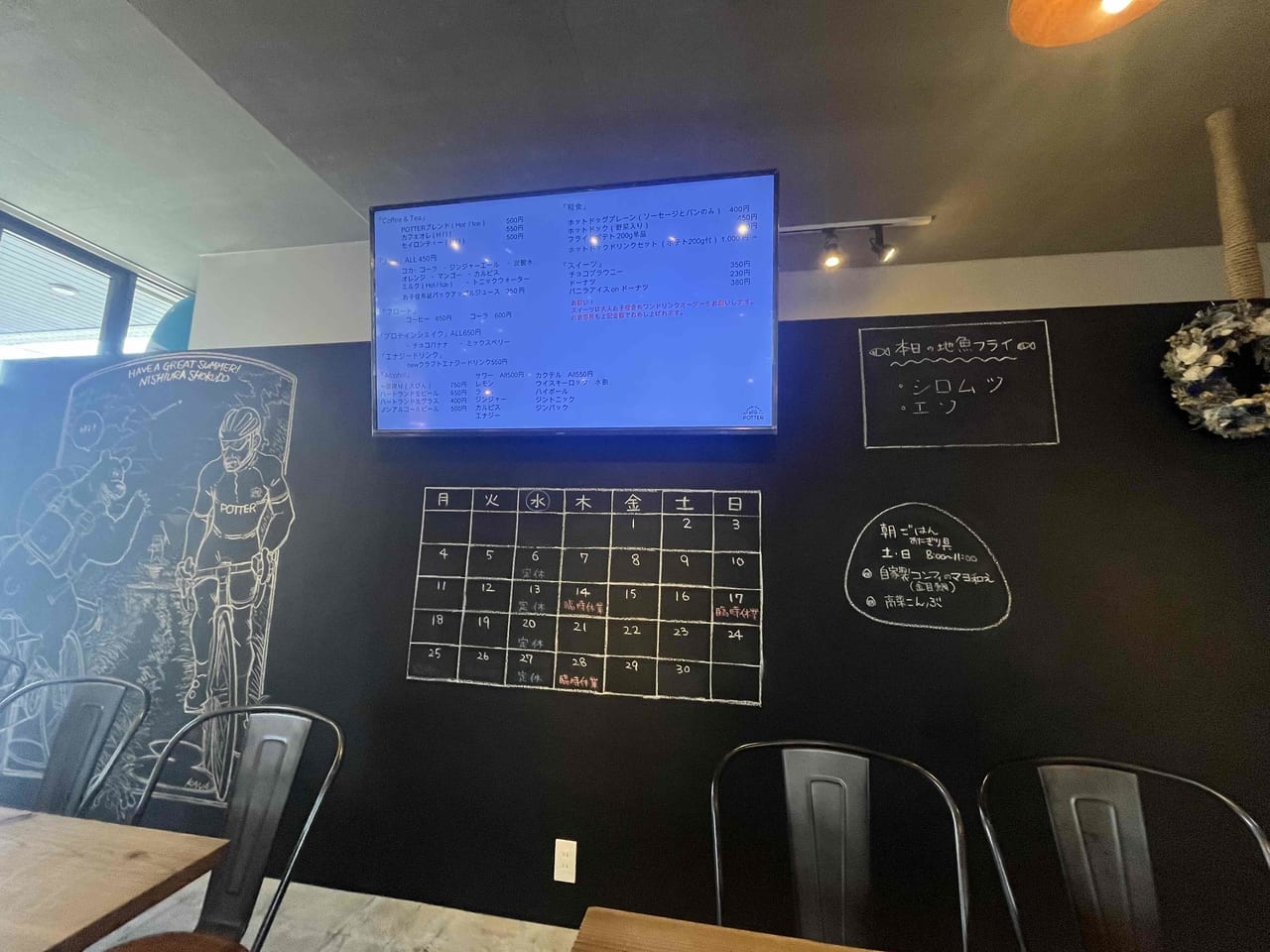 チョークアートを施した黒板にはわかりやすく1カ月のスケジュールも記載されています。海の真隣でゆっくりとした時間を味わえる西浦食堂!2階は、漁港と三河湾を望むテラス席を設置し、サイクリストが宿泊できるよう、サウナ付きのゲストハウスを併設する予定だそうです。2階のゲストハウスのOPENも楽しみです!是非皆さん西浦食堂にお立ち寄りくださいね!