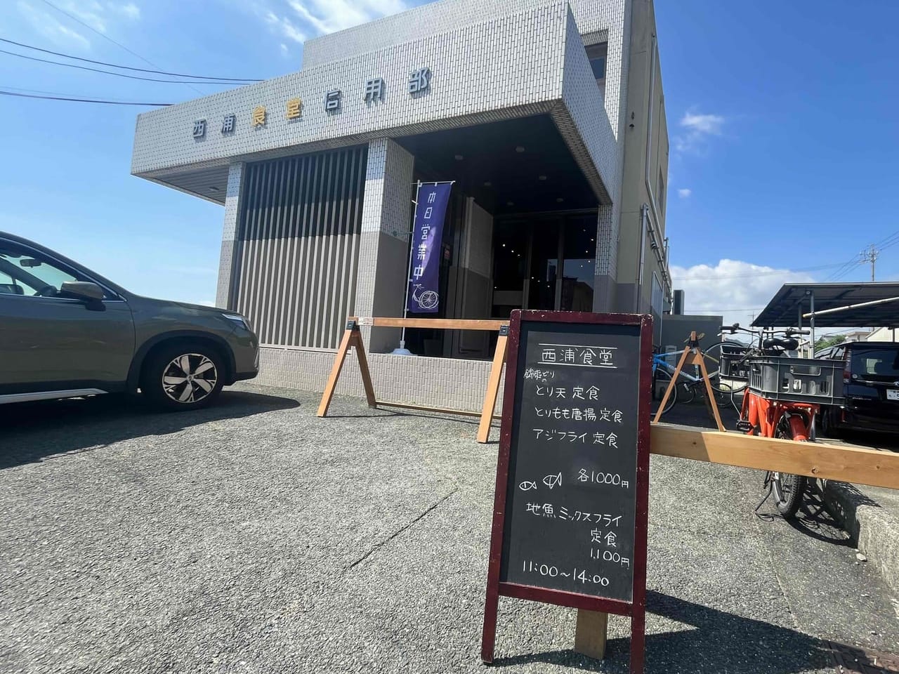 蒲郡市西浦町にある2023年8月10日にオープンした「西浦食堂」に伺いました。こちらは県信用漁協連合会西浦支所跡の建物を活用したお店です。文字通り西浦漁港の真隣にあります。こちらは2022年5月に営業を終えた竹島パルクのチャリカフェポターの店主が縁深い西浦町にて新店舗での営業を始められたという「西浦食堂」!