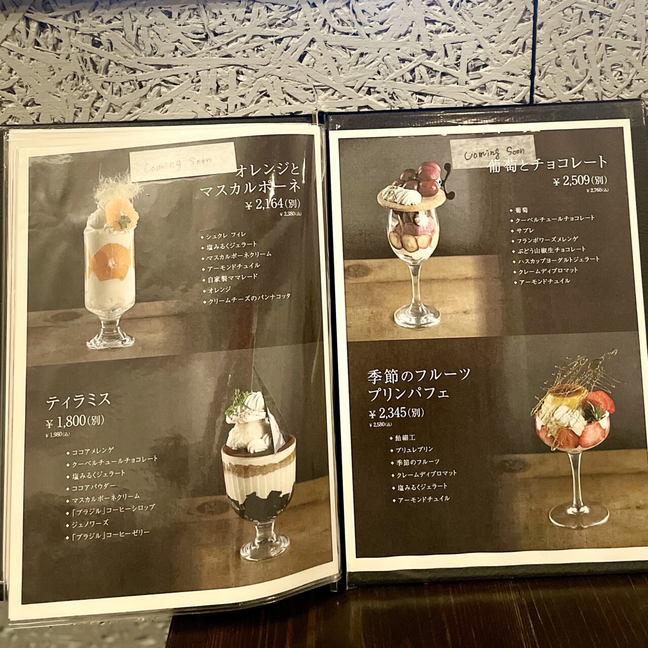 パフェの提供は15時以降となっています。近日提供予定のメニューもあるようですので、お店の方にご確認ください。