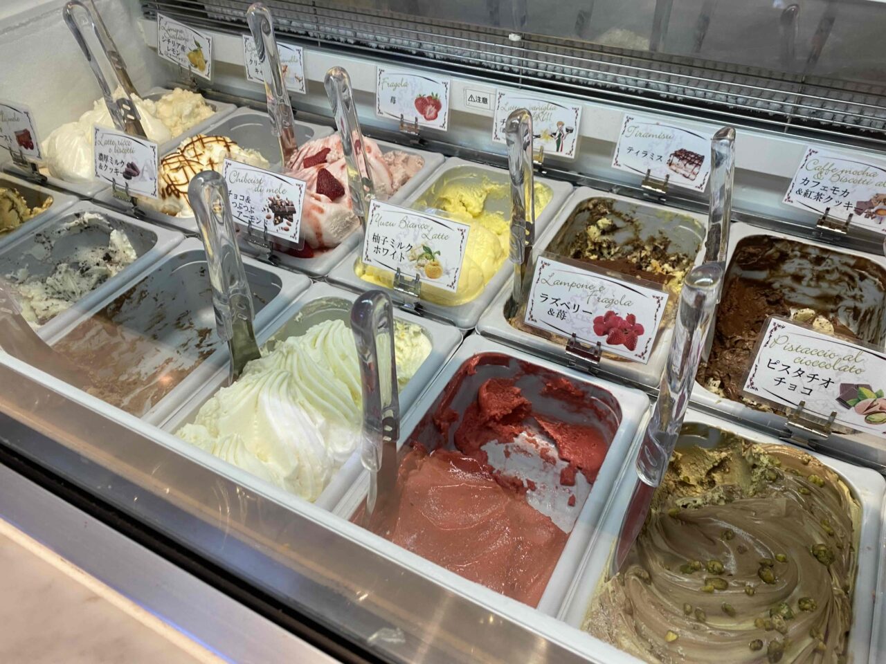 イタリアンのデザートといえばおなじみのジェラートも、「柚子ホワイトミルク」や「ピスタチオチョコ」など種類豊富。