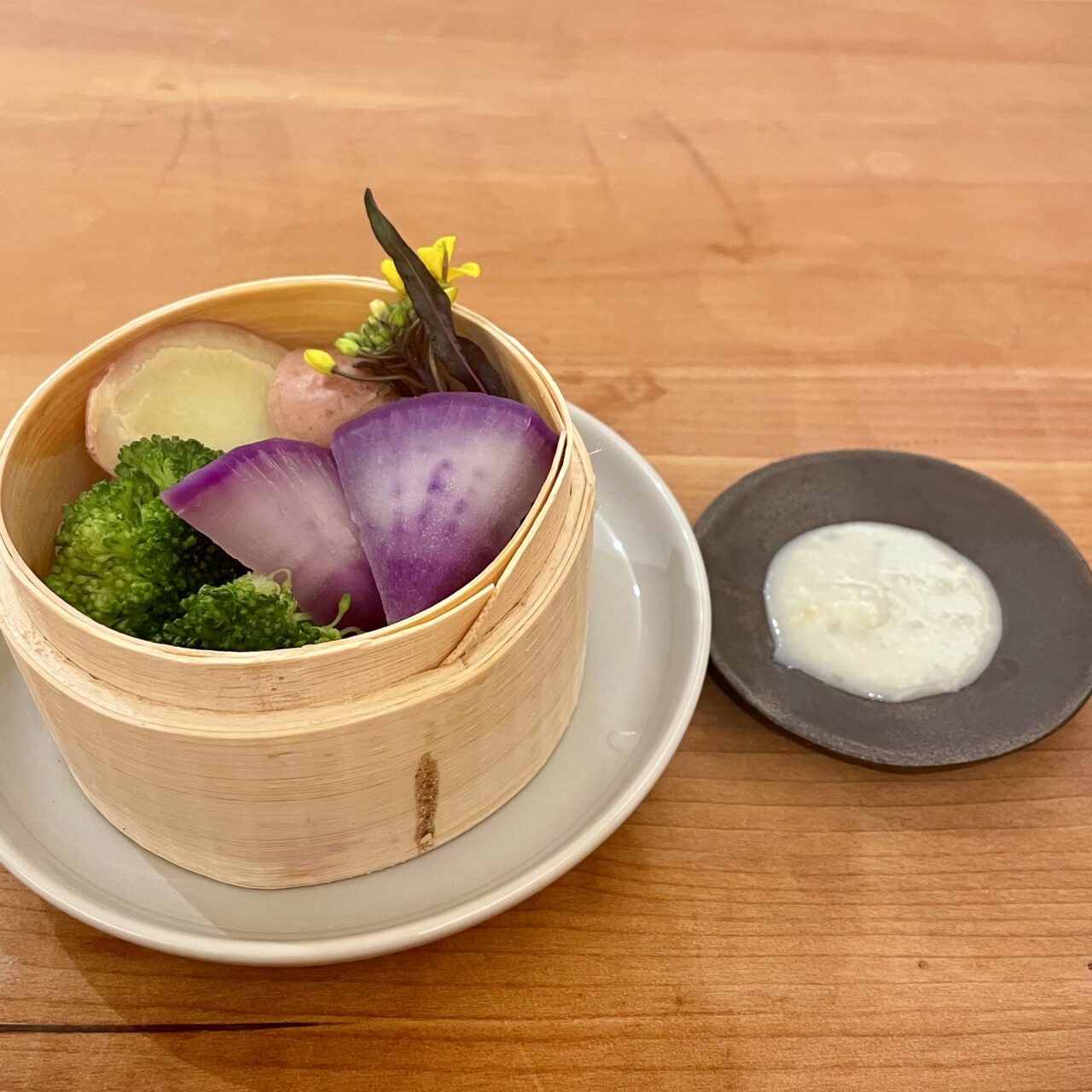 野菜のせいろ蒸しは、野菜本来それぞれの旨味はもちろん、食感も楽しみながらいただくことができる一品でした。無添加で身体に優しい旬の食材からつくられた季節の創作スープと野菜のせいろ蒸し、心も身体もポカポカになりました。