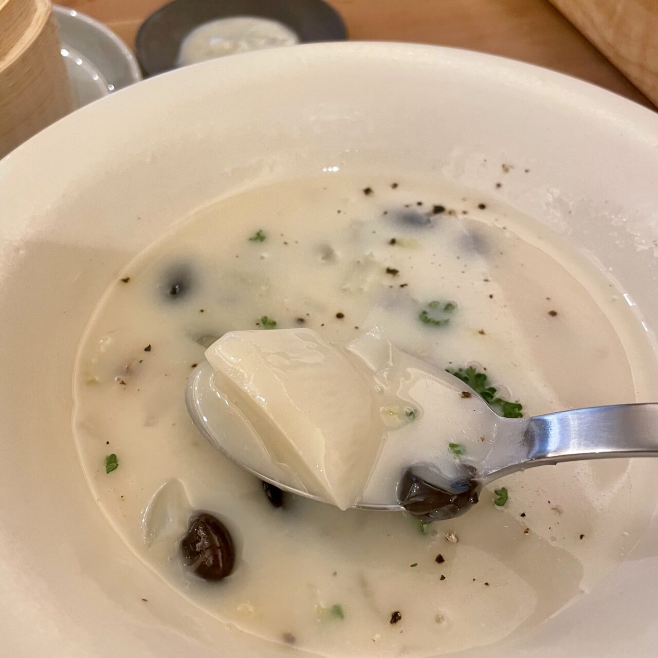 カブ、黒豆などお野菜本来の甘みと旨味が引き出されたあさりのクラムチャウダー、優しい味付けで美味しくいただきました。