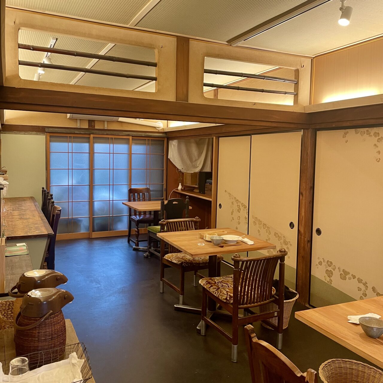築100年近い古民家を改装した、テーブル席とカウンター席合わせて12席のおしゃれで落ち着いた雰囲気の店内。それほど広くありませんし、席数も12席ですので、3名以上でお出かけされる場合は、事前に予約されることをおすすめいたします。伺った日も14時過ぎでしたが、前に二組の方がいらっしゃいました。