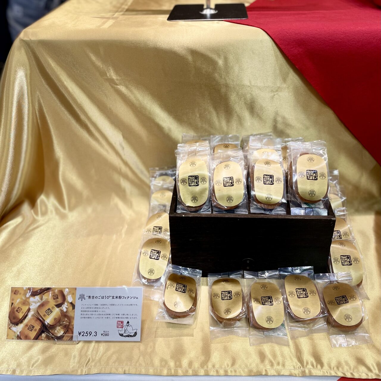 出店期間中はその他「秀吉のごほうび」シリーズの定番商品、「秀吉のごほうび 玄米粉フィナンシェ」、「秀吉のごほうび ブレンドコーヒードリップバッグ」なども販売されています。