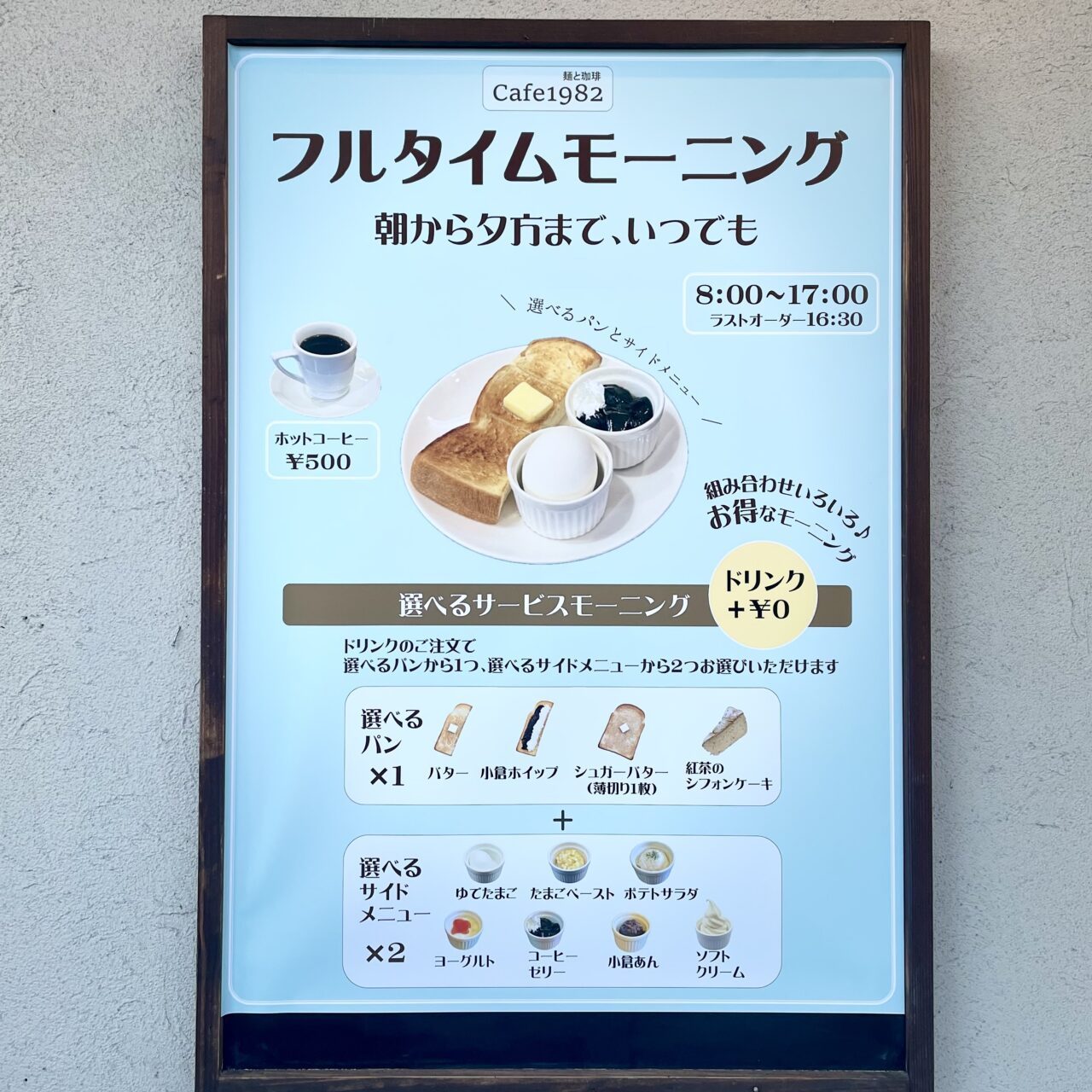 サイドメニュ―が2種類選べるお得感も嬉しいですね。「フルタイムモーニング」もおススメしたいサービスです。