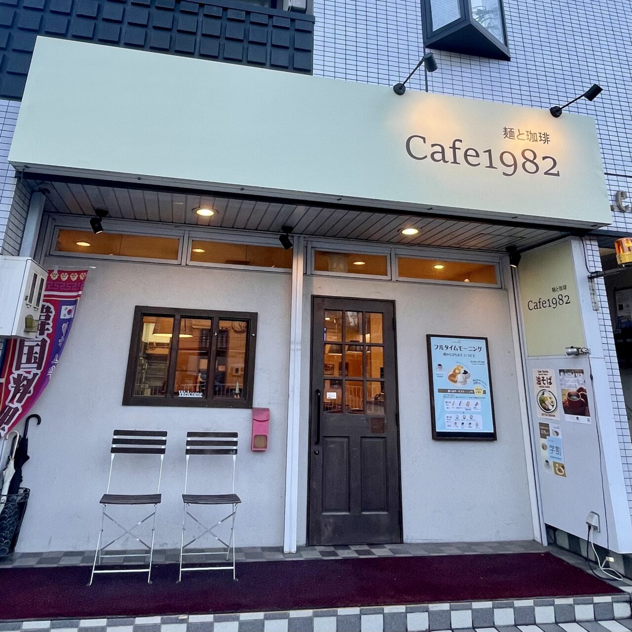 名古屋市天白区、市営地下鉄鶴舞線塩釜口駅から徒歩5分、名城大学天白キャンパスのすぐそばの場所に「麺と珈琲 Cafe 1982」が2026年1月26日にオープンしました。「田園 dining&cafe Smile」の跡地になります。駐車場は店舗横に2台(1、6番)、その他提携駐車場があります。