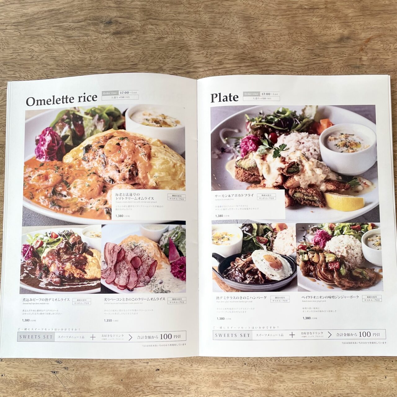 グランドメニューは、15時以降に注文可能なメニュー、17時以降注文可能なメニューとがあります。