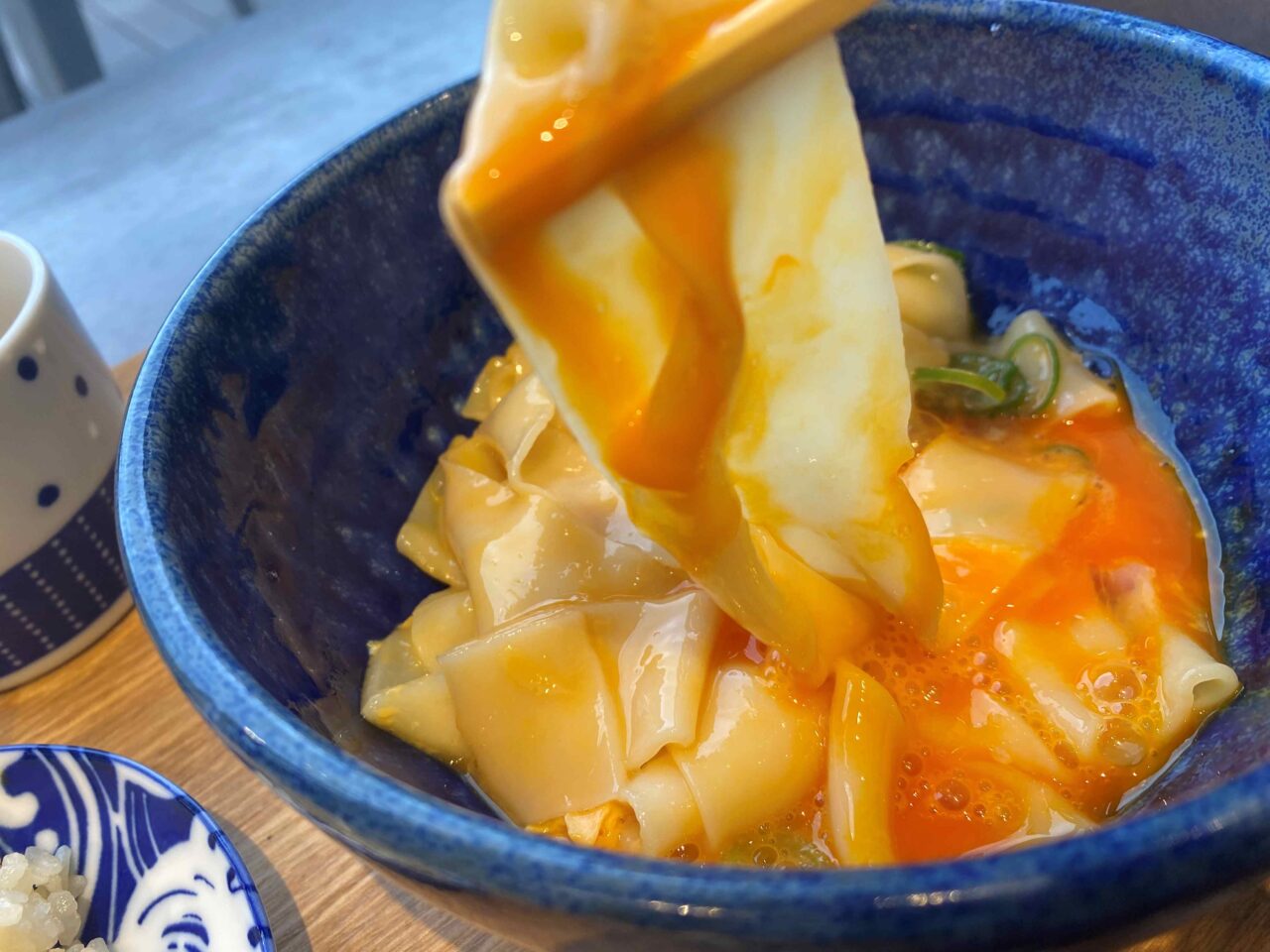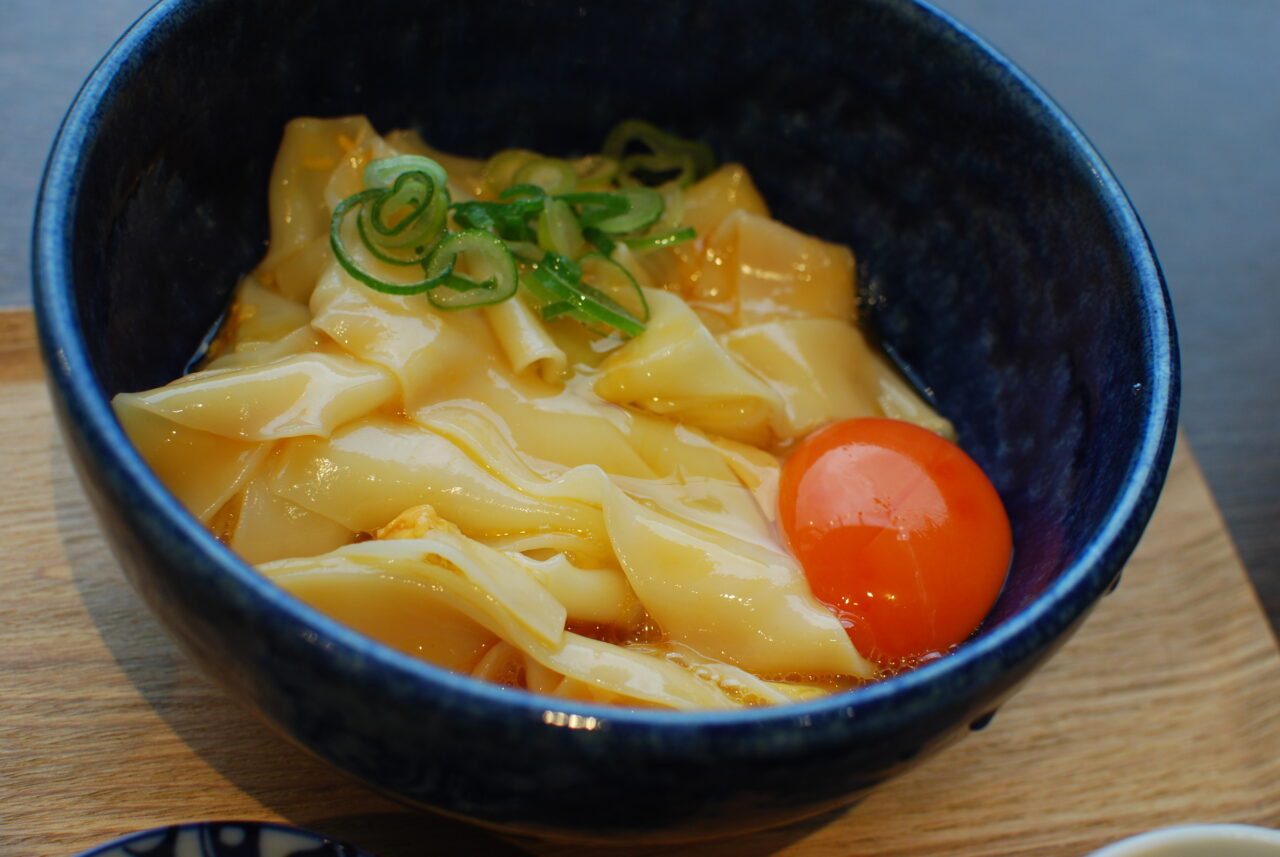 【名古屋市千種区】幅広きしめんに濃厚卵をからめて食べる!「星が丘製麺所」のかまたま風きしめん